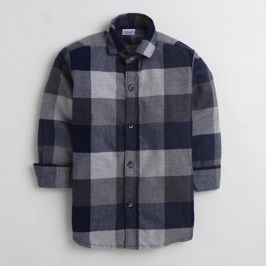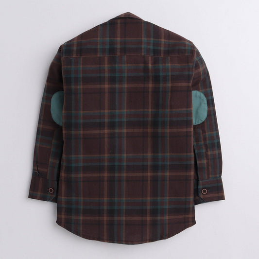 Polka Tots checks full sleeves shirt with blue bow tie elbow patch - Brown