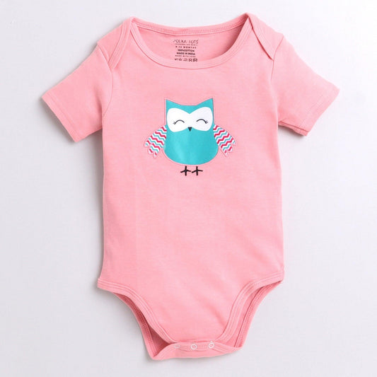 Polka Tots Owl applique Half Sleeve Onesie - Pink