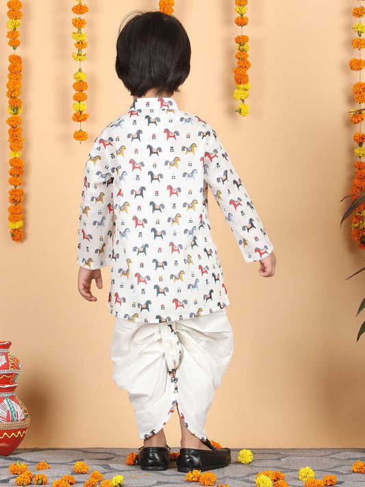 Polka Tots Full Sleeve Horse print Kurta With Dhoti set - Multicolor