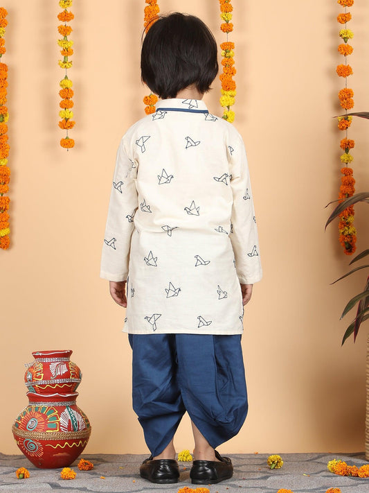 Polka Tots Full Sleeve Origami Embroidery Kurta With Dhoti Set - Blue
