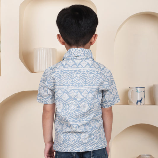 Polka Tots Half Sleeves Abstract print Shirt - Blue