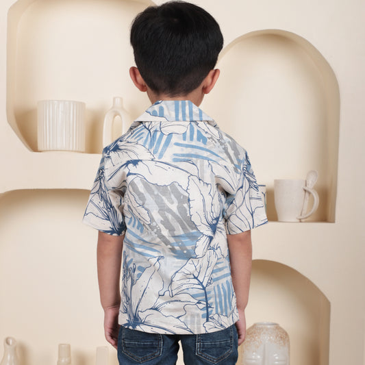 Polka Tots Half Sleeves Summer times print Shirt - Blue