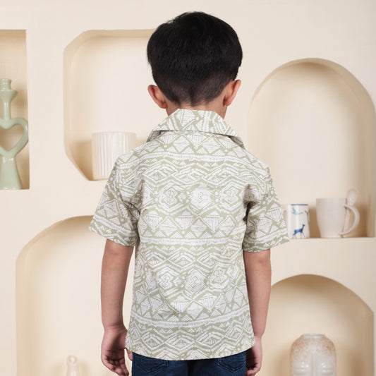 Polka Tots Half Sleeves Forest camp print Shirt - Green