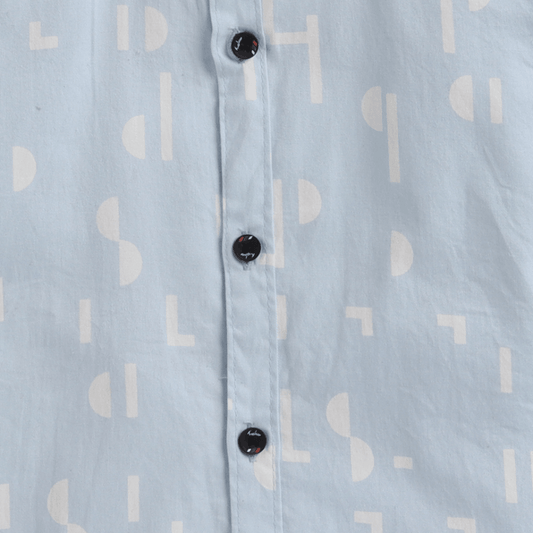 Polka Tots Half Sleeves Abstract Print Shirt With Attached Tee - Blue