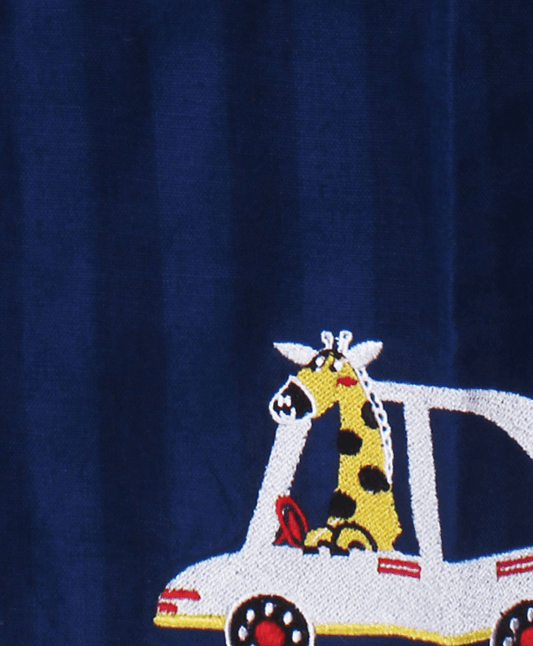 Polka Tots Giraffe Embroidered Full Sleeves Kurta - Navy