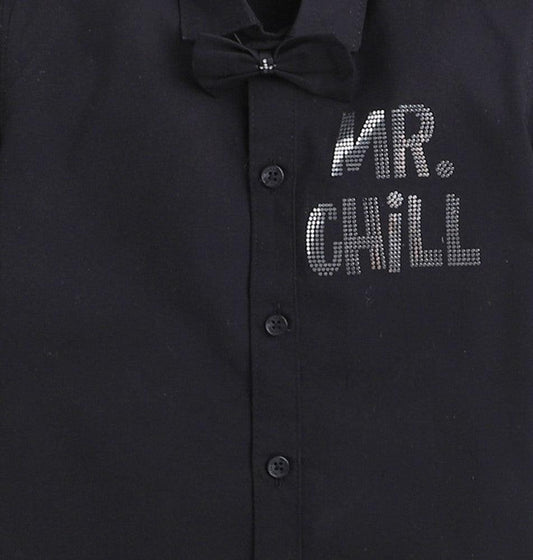 Polka Tots Half Sleeve Regular Fit Mr Chill Diamond Party Wear Shirt With Bow Tie - Black