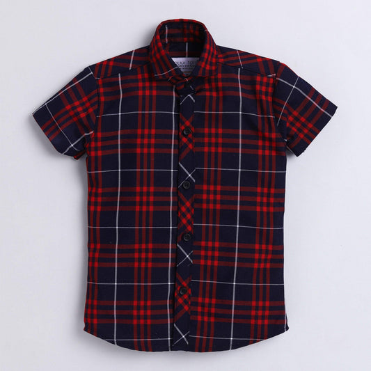 Polka Tots Full Sleeve Checkered Shirt Back Print - Red