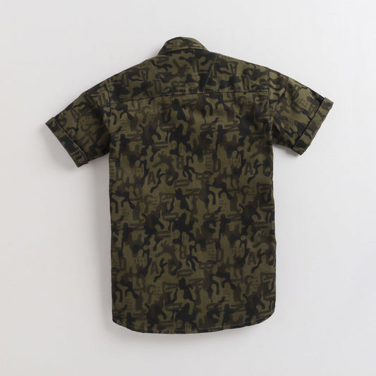Polka Tots Half Sleeves Camouflage Print Detailing Shirt - Green