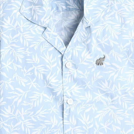 Polka Tots Cotton Half Sleeves Floral Printed Tennis Collar Kids Shirt - Sky Blue
