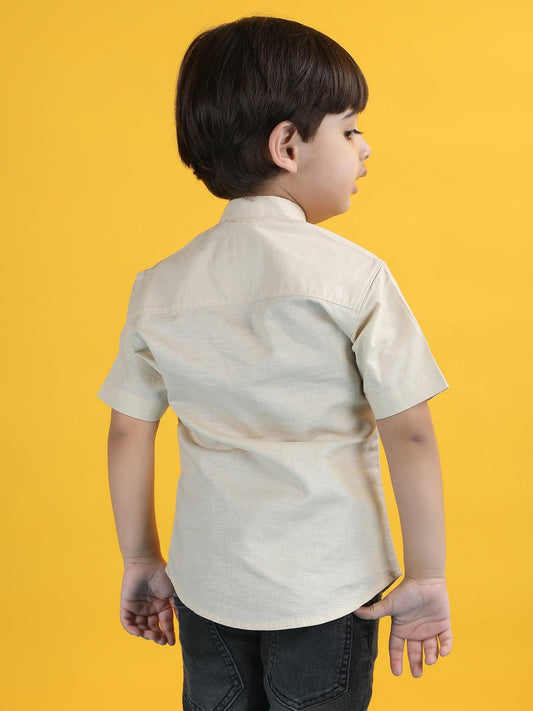 Polka Tots Half Sleeves Embroidered Shirt - Brown