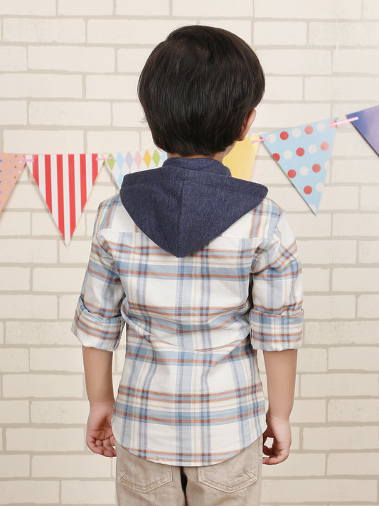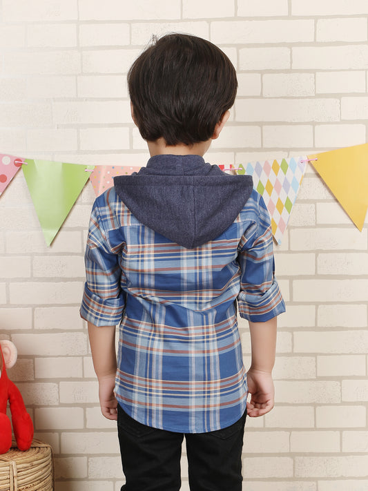 Polka Tots Full Sleeves Lining print Cotton Shirt - Blue