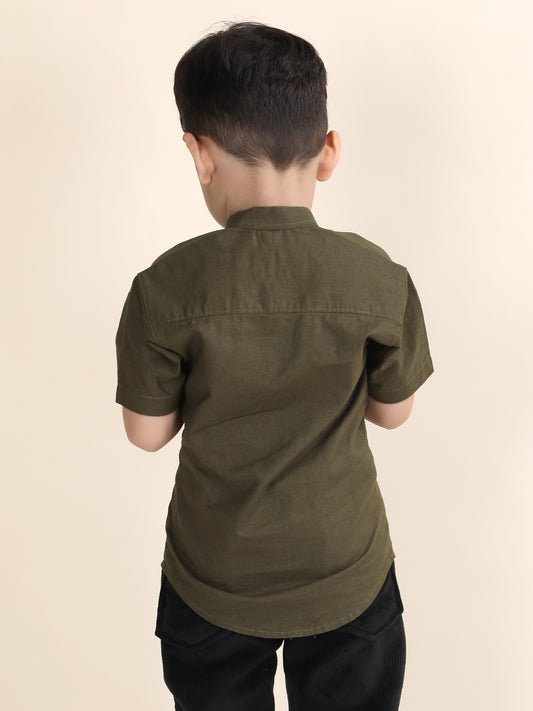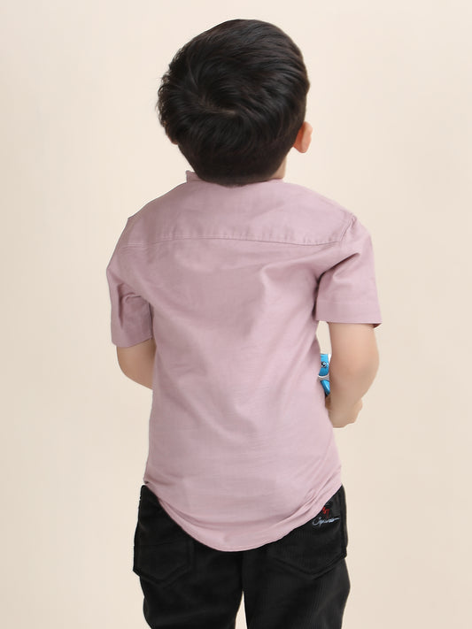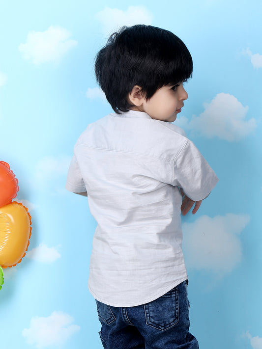 Polka Tots Half Sleeve plain Shirt with Dual Bow Tie - White