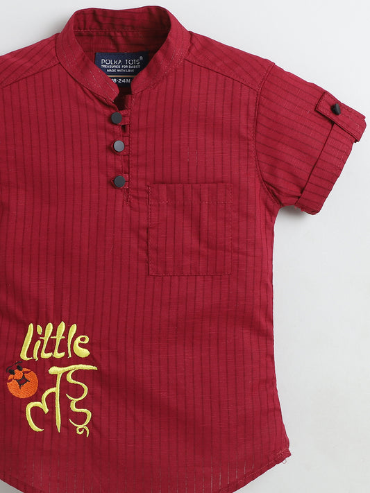 Polka Tots Half Sleeve Striped Kurta with Hindi Graphic - Maroon