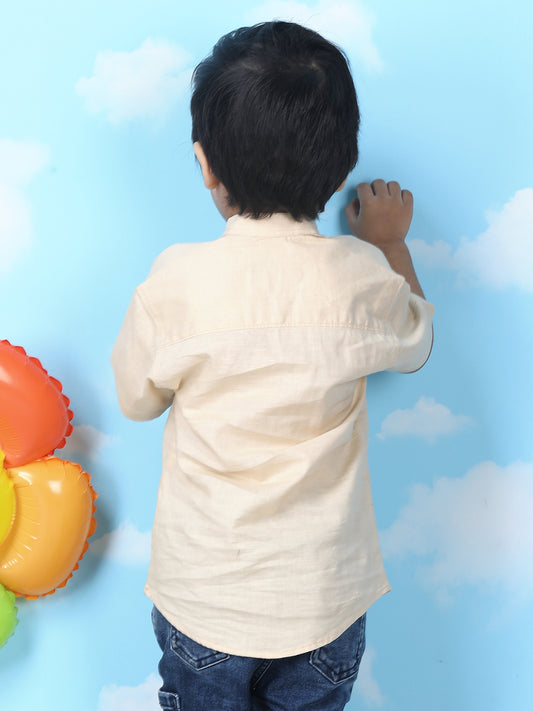 Polka Tots Full Sleeves Bearly Awake print Kids Shirt - Beige