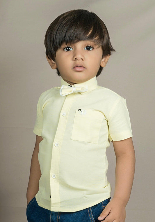 Polka Tots Half sleeve Plain Shirt With Dual Bow Tie - Yellow