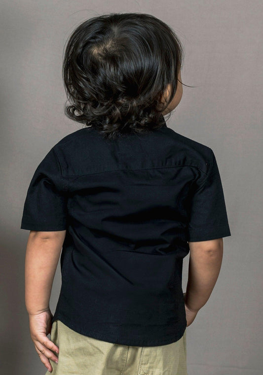 Polka Tots Half Sleeve Hip Hip Hooray Print Shirt - Black