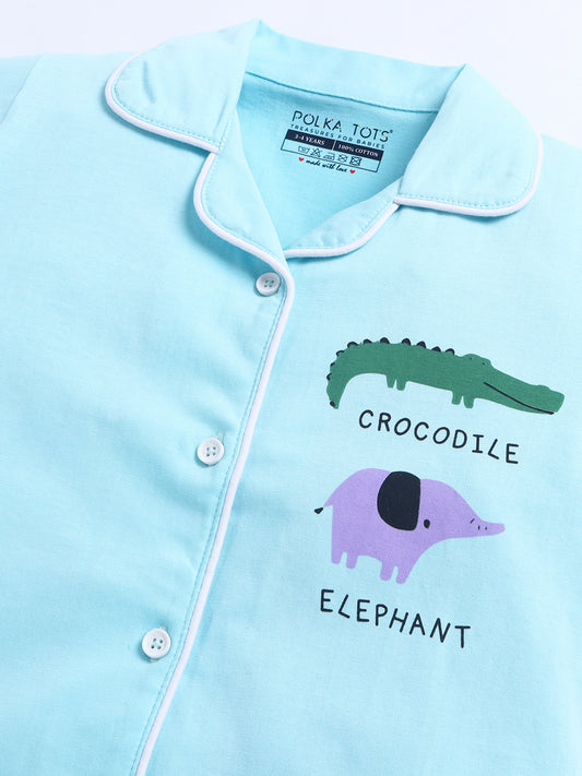 Polka Tots Turtle print Sleeveless Jhabla and Pant Set - Multicolor