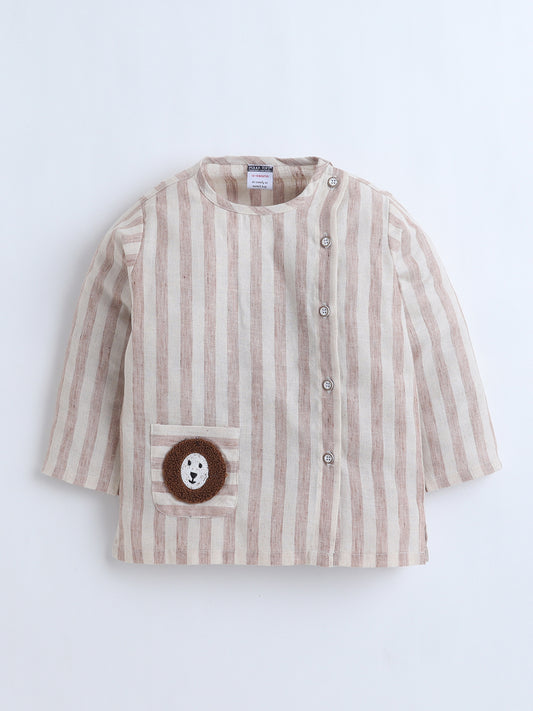 Polka Tots Full-Sleeves Beige Striped with Lion Pocket Jhabla and Pant Set - OFF WHITE