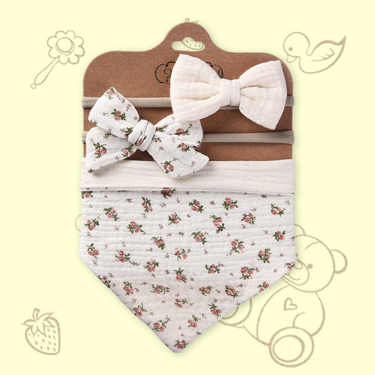 Polka Tots Set of 2 Floral Bow Headbands with Bib Set - White