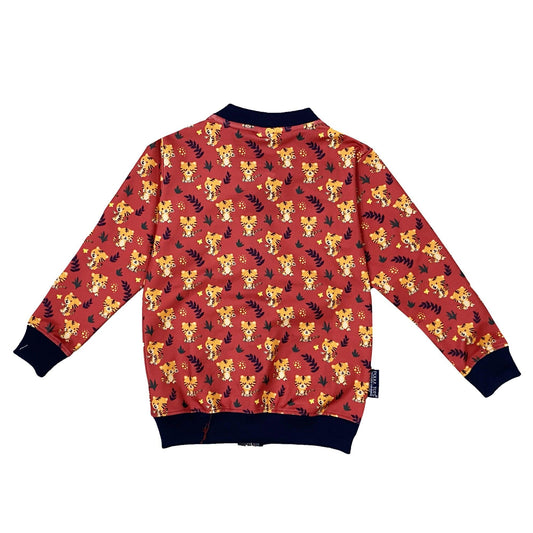 Polka Tots Full Sleeves Baby Tiger Print Poly Jacket - Red
