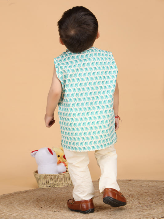 Polka Tots Sleeveless Elephant print Jhabla and Pant Set - Aqua