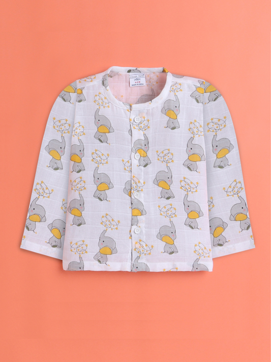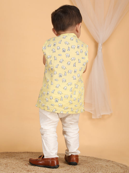 Polka Tots Sleeveless Elephant print Jhabla and Pant Set - Yellow