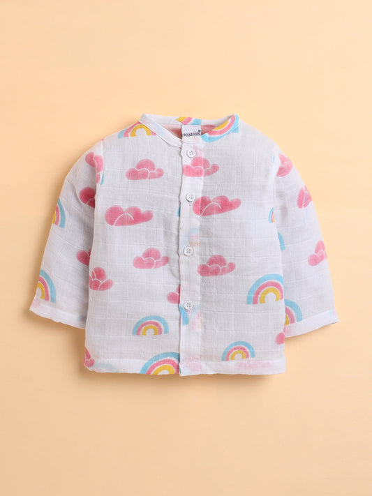 Polka Tots Soft Muslin Cotton Full sleeves Rainbow Mist print Jhabla and Pant Set - Multicolor