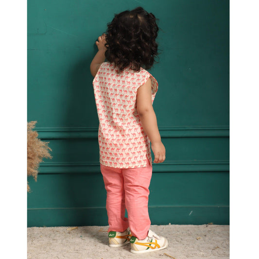 Polka Tots Camel Print Sleeveless Jhabla and Pant Set - White & Pink