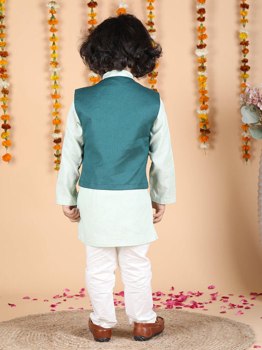Polka Tots Full sleeves Lotus Embroidery Koti Kurta Pyjama - Green