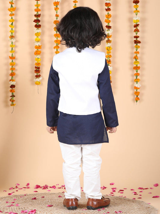 Polka Tots Full sleeves Lion Embroidery Koti Kurta Pyjama - Navy Blue
