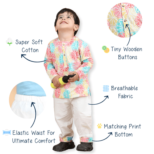 Polka Tots Fruit Floral print Full sleeves Nightwear Kurta pyjama set - Multicolor