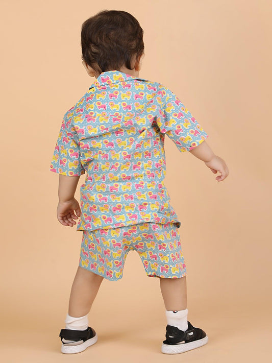 Polka Tots Half Sleeves Lion Print Co-ords - Multicolor