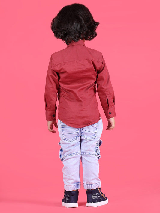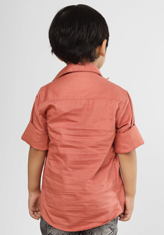 Polka Tots Half Sleeves Solid Shirt - Peach
