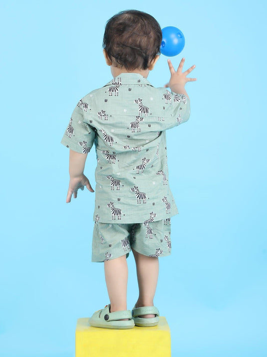 Polka Tots Half Sleeves Zebra Print Co-ords - Green