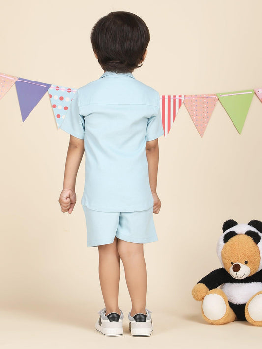 Polka Tots Half Sleeves Geometric print Co-ord Shorts - Blue
