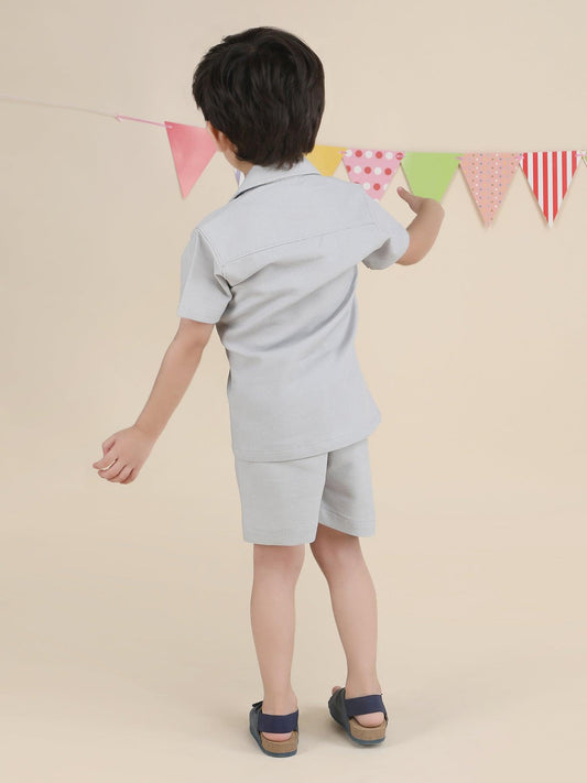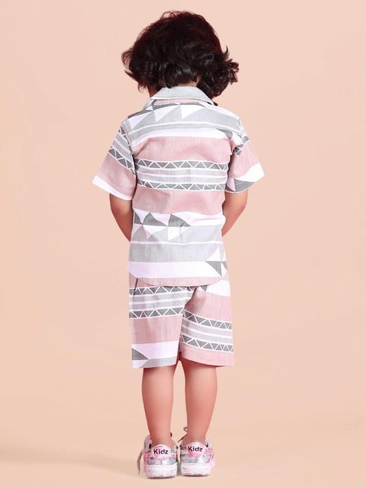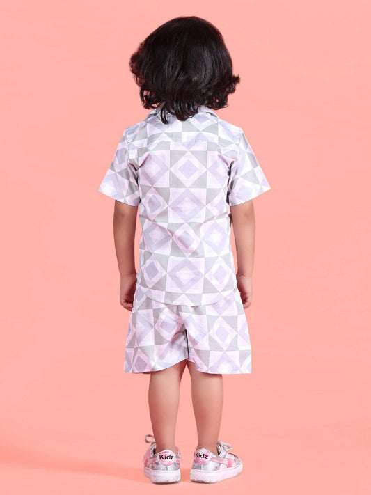 Polka Tots Half Sleeves Geometric print Co-ord Shorts - Grey