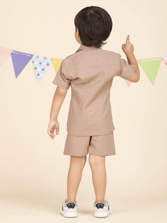 Polka Tots Half Sleeves Geometrc print Co-ord Shorts - Brown