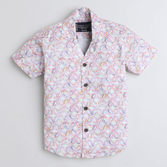 Polka Tots Cotton Half Sleeves Shirt With Shorts, Co-ord Set All Over Print - Light Pink