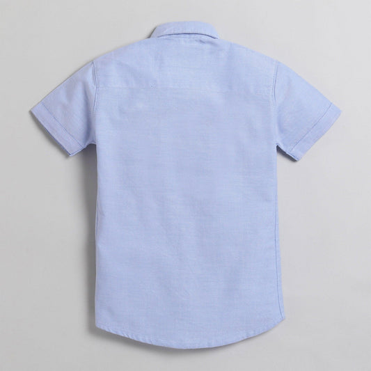 Polka Tots Half Sleeves Fish Embroidery Detailing Shirt - Blue