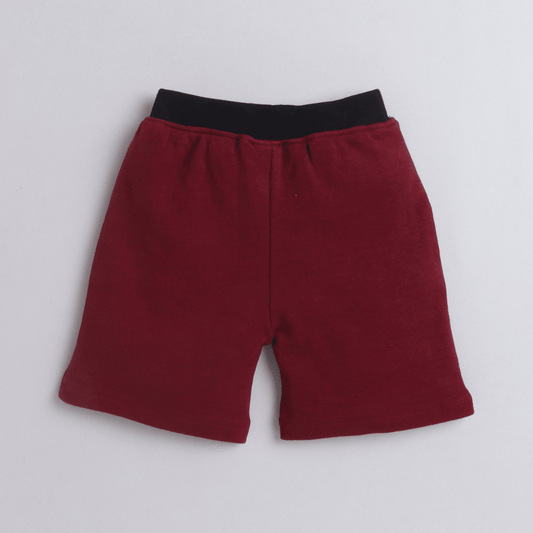 Polka Tots Knee Length Letter Patch Shorts - Maroon