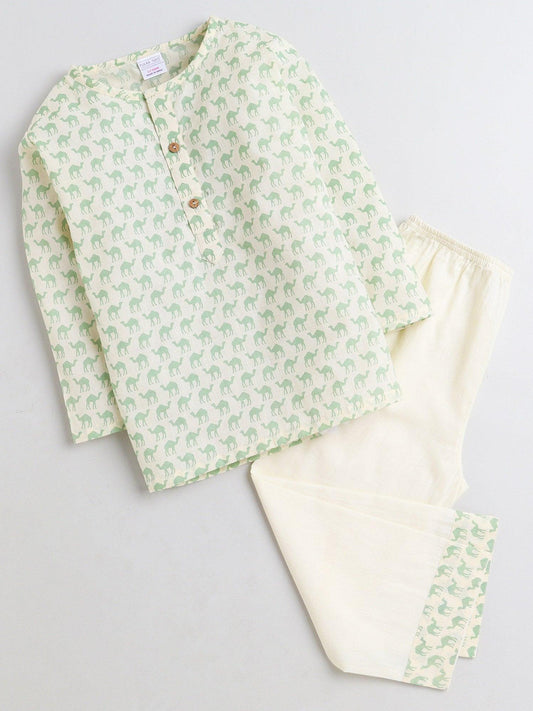 Polka Tots Camel print Full sleeves Nightwear Kurta pyjama set - Green