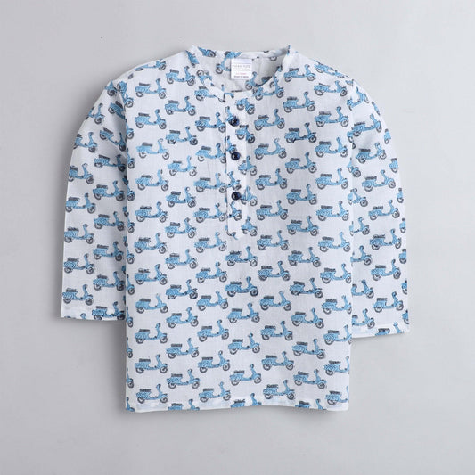 Polka Tots Scooter print Full sleeves Nightwear Kurta pyjama set -Blue