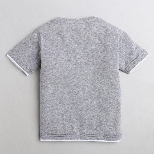 Polka Tots Half Sleeve T-Shirt Racing Flag With Pocket Print - Grey