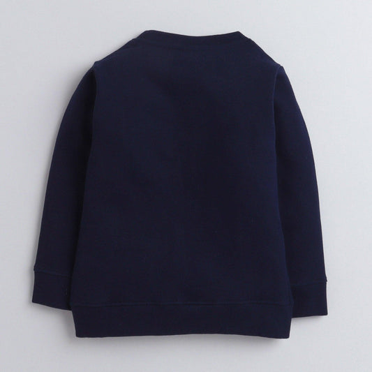Polka Tots Full Sleeves Sweatshirt Bunny Print with Pom Pom Detail Navy Blue
