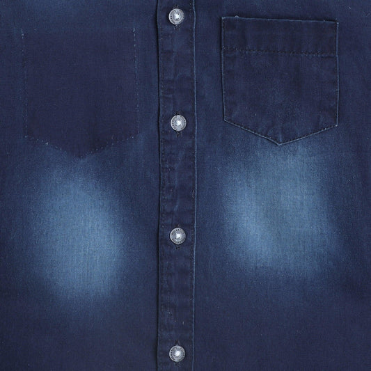 Polka Tots Cotton Full Sleeves Wash Effect Denim Shirt - Blue