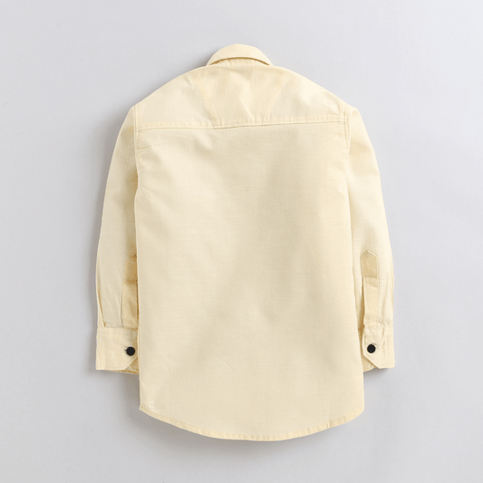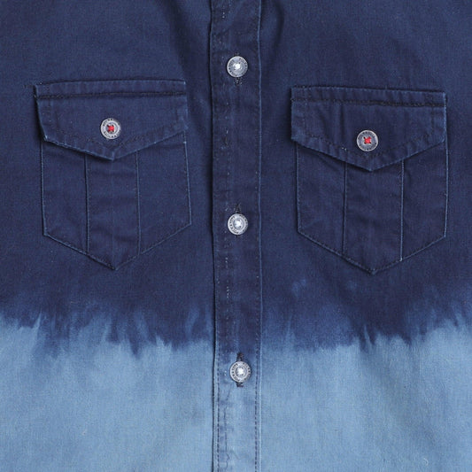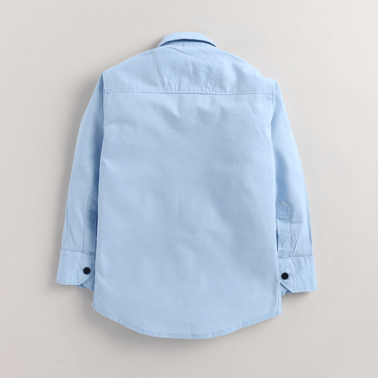 Polka Tots Cotton Full Sleeves 2 Flap Pocket Half Wash Effect Kids Shirt - Blue