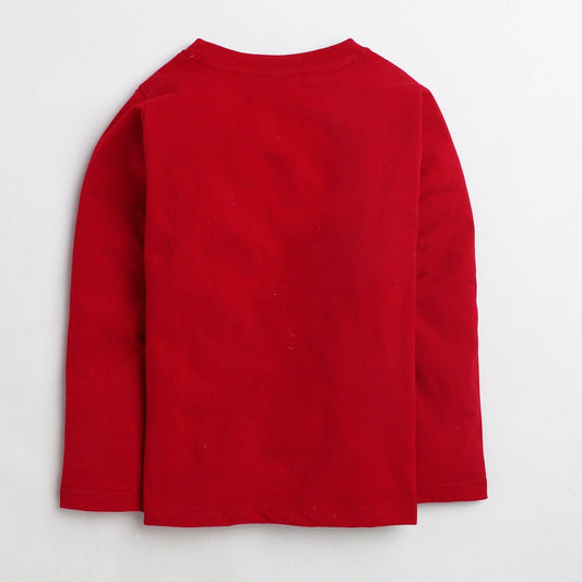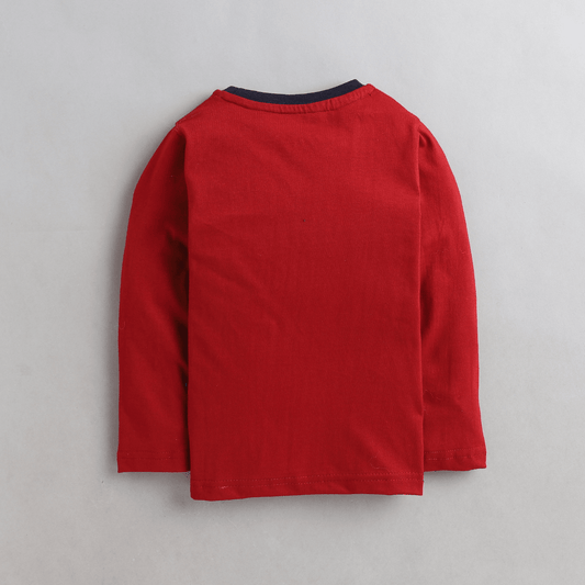 Polka Tots Full Sleeves Monkey Printed Tshirt - Red