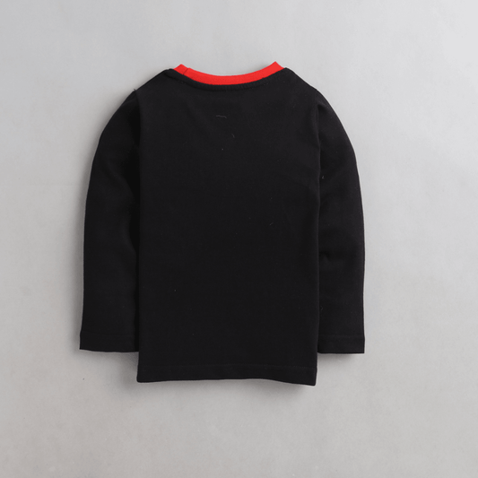 Polka Tots Full Sleeve Fishing Bear print Tshirt - Black