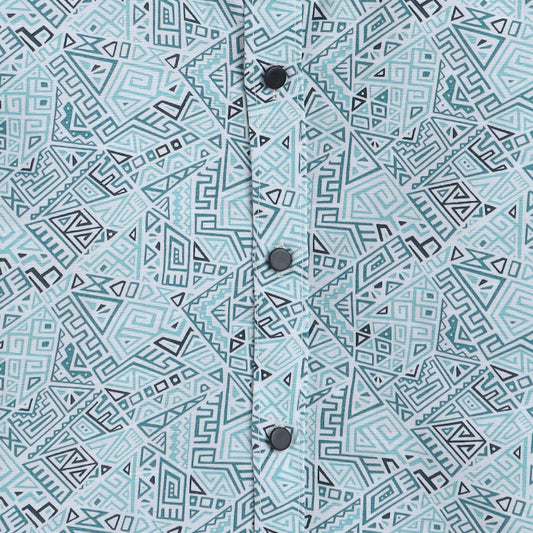 Polka Tots Cotton Regular Fit Full Sleeve Zig Zag Print Dual Bow Tie Shirt - Sky Blue
