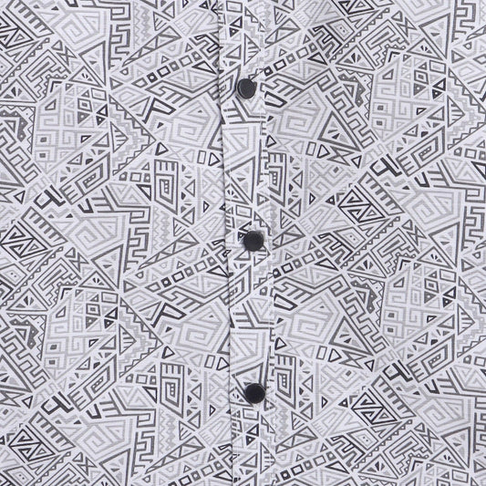 Polka Tots Cotton Regular Fit Full Sleeve Zig Zag Print Dual Bow Tie Shirt - White & Grey